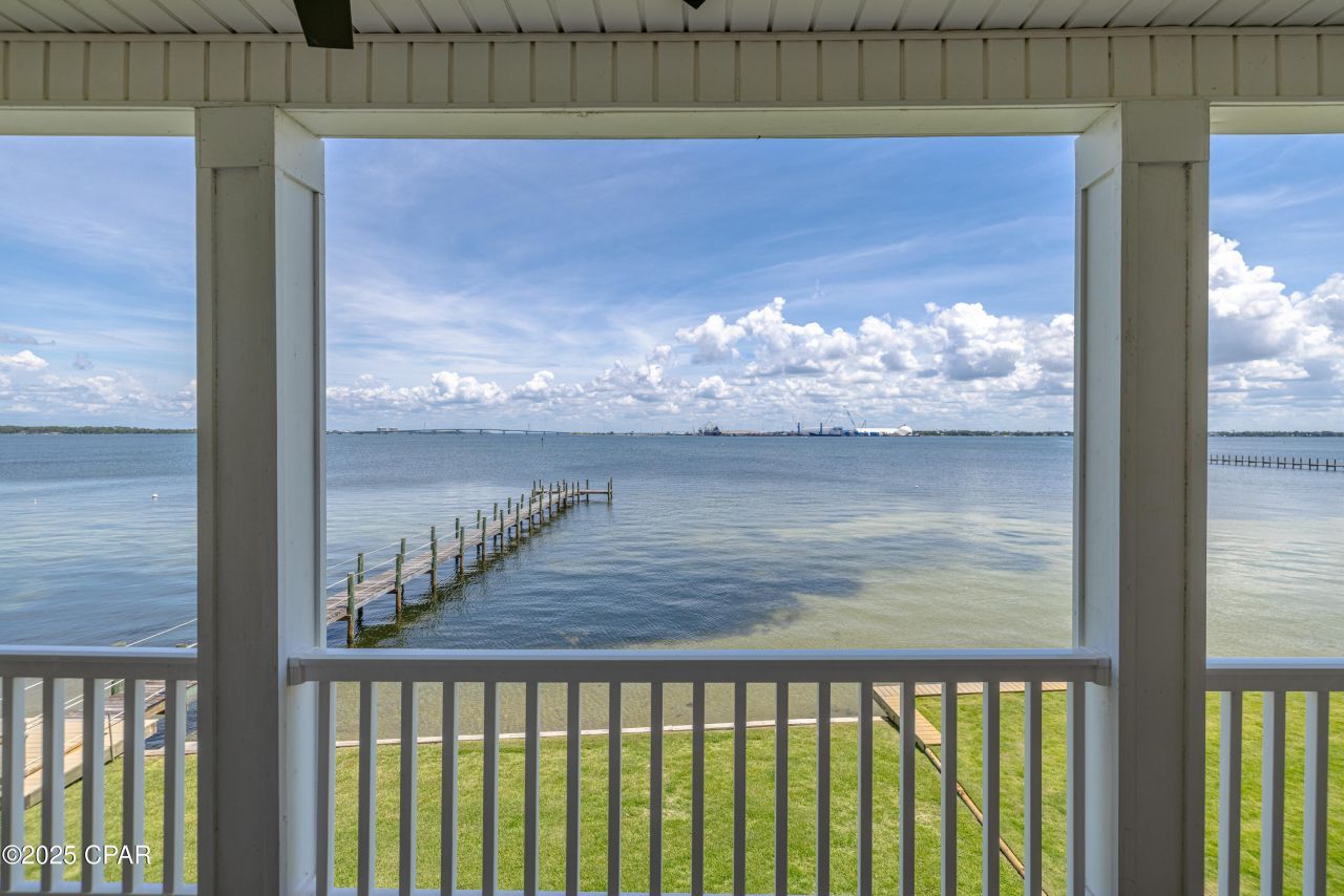 Highly Desirable Rare Opportunity to own this Stunning Waterfront End Unit. 46 Feet on St. Andrews Bay! This home is the Second largest property in the community. The modern kitchen has all upgraded stainless steel appliances well designed soft close cabinets and 2 pantry cabinets which allow for plenty of storage. The Living area includes a wall mounted electric fireplace for Warmth and Beauty. Newly installed 72'' modern ceiling fan. Modern light fixtures. Sprayed insulation in roof provides lower power cost. Gorgeous views of the Bay from the living area and kitchen. Crown molding and plantation shutters add character and charm. This spacious home includes 3 Ensuites. The Master bedroom includes a large walk in closet, Master Bath with Soaking Tub, private tiled shower and separate Toilet Room. Double vanity. Private Balcony showcasing gorgeous views of St. Andrews Bay. Second bedroom is spacious and cozy with an attached bath. Jacuzzi tub with double vanity and shower. Private Balcony. Third bedroom has a spacious cozy room with double closet, private bath with tub and shower. Private balcony. The spacious 2 car garage can be conveniently accessed from the 1st floor Foyer. New Sod has been planted along with new pavers for the walkway, steps and drive. This Prestigious Community includes a Beautiful pool, Hot tub and clubhouse overlooking the bay. The Nature Walk is located on a 7 acre preserve. There are also several docks in the community for boating, fishing and kayaking right from your backyard. Don't miss this opportunity to see this beautiful piece of paradise. . . ~MOTIVATED SELLER!