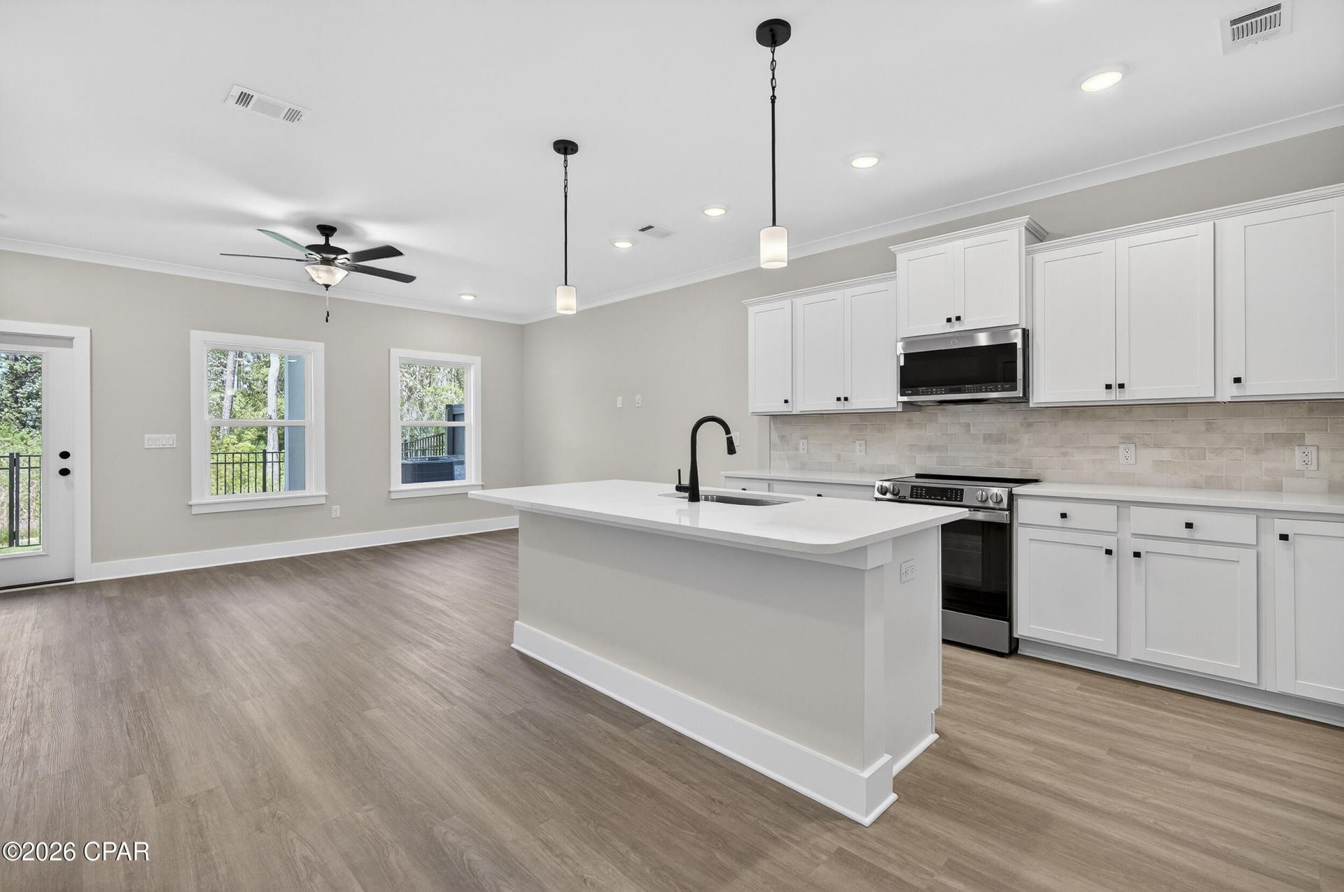 NO RENTAL RESTRICTIONS!!! Our stunning pool is NOW OPEN! The prefect place to SOAK UP THAT Florida SUN! Seagate at Clara is a new townhome community nestled in the vibrant city of Panama City Beach, FL. This two-story unit features board and batten exterior and covered entries. One car garage provides a great space for storing beach essentials. This open concept townhome boasts a stylish kitchen with white cabinets, tile backsplash, a large island with quartz counter tops - perfect for entertaining. The elegant Owners Suite is designed with comfort in mind showcasing a large walk in closet and double- bowl vanities. Main Bath has tiled shower. All bathrooms have quartz countertops. LVP is located throughout the home. The community pool features a cabana, lounging, seating and grilling stations. This community has a dedicated dog park. Seagate at Clara is in a prime location, approximately 1. 4 miles to the sandy beaches and just minutes from Pier Park.