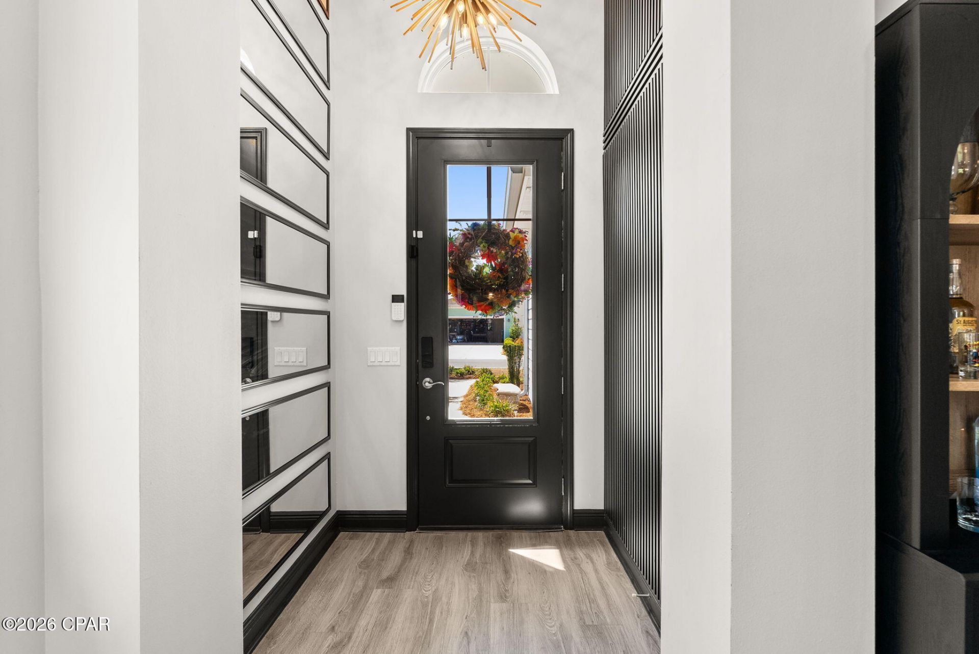 Welcome to this beautifully upgraded, coastal-modern home in the highly sought after Latitude Margaritaville Watersound community offering 1774 sq ft of thoughtfully designed living space, this home blends a clean, contemporary style with relaxed coastal living. From the moment you enter, your greeted by a striking light-filled foyer with soaring ceilings, custom wall detailing and designer lighting that sets the tone throughout the home. The open concept layout flows effortlessly into the main living area, where tray ceilings, abundant natural light, and a seamless indoor-outdoor connection create an inviting space perfect for both everyday living and entertaining. The kitchen is a standout, featuring crisp white cabinetry, updated hardware, modern lighting and an oversized island ideal for gathering. The adjacent dining area is warm and welcoming, while the living room offers a custom media wall and the included 75'' TV, making it a perfect space to unwind. Step outside into your outdoor retreat, an extended patio and newly added lanai with panoramic views and double doors that bring the outdoors in. The space is enhanced with professional landscaping and low-maintenance turf, perfect for pets and easy living. Unwind in your included hot tub and enjoy the added bonus of a 55'' TV on the covered patio - perfect for entertaining or relaxing evenings at home. Additional upgrades include premium Sherwin Williams paint, upgraded lighting in the kitchen, dining and entry areas, a widened driveway, a newly enclosed den for added flexibility (currently used as a bedroom) and custom up-down shades for light and privacy control. The home also features a solar system with a Tesla backup battery and a SimpliSafe security system for added comfort, efficiency and peace of mind. Ideally located within walking distance to the community dog park and resort-style amenities featuring an Expansive Fins Up! Fitness Center with state-of-the-art equipment, Resort-style lagoon pool, Indoor pool and dedicated lap lanes, Bar & Chill Restaurant and Changes in Attitude Bar overlooking the Intracoastal Waterway, Tennis, pickleball, and bocce courts, miles of walking, biking, and golf-cart trails throughout the community. Dog park, green spaces, and community gathering areas. Ceramic shop, wood-working shop, theater, meeting rooms, and multipurpose event spaces. Full calendar of events including special interest clubs, concerts, fitness classes, and social gatherings year-round. Adjacent commercial conveniences include- shopping, dining, banking and a future Publix grocery store. Future Marina adjacent to the amenities center off of Latitude Blvd. A new medical center is only 5 miles away with a new state of the art hospital opening in 2027. Located only 7 miles from the beach. This home offers a perfect blend of convenience, community and coastal living. Call today for your appointment!